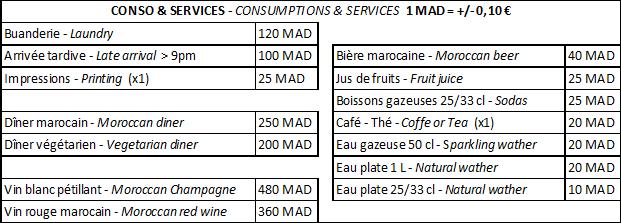 - Evening meals must be ordered in the morning. The price is 250 dh/person.