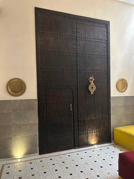 Riad Inaya, located in one of the oldest parts of the medina, is a house that breathes authenticity. Restored with passion, every corner of the house tells a story. From the moment you arrive, you will be welcomed by two magnificent illuminated doors, renovated by local artisans. The main door, majestic, now serves its original function between the entrance hall and a more discreet room, while the second, characteristic of Moroccan double doors, has been restored to become a brilliant decorative element.